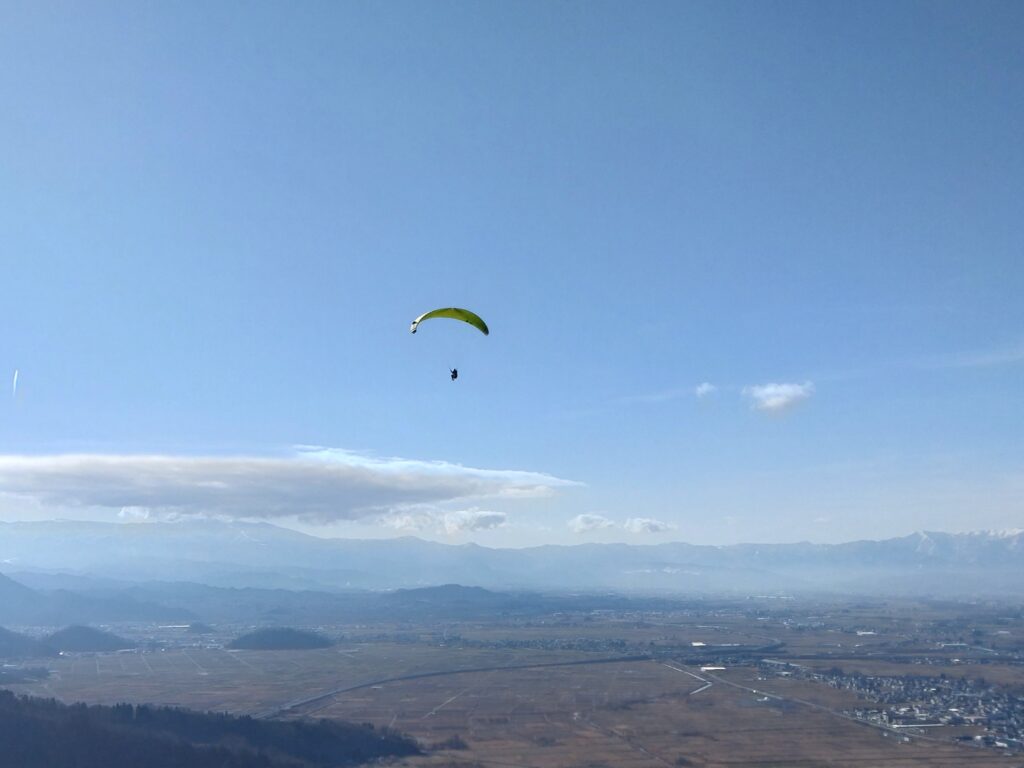 高気圧の中心は東に移り良いお天気ながら本流は東風。逆転層に守られた朝凪がブレークした直後にはサーマルソアリングが楽しめました。その後は東風が支配的になりフライト終了。校長は上級タンデム検定の為に朝霧に出発。