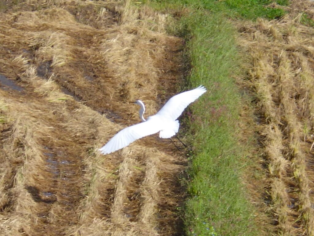 落穂拾いに来たのかシラサギさんが登場。足出し良し!