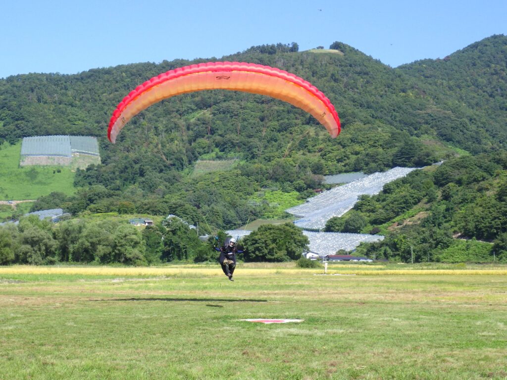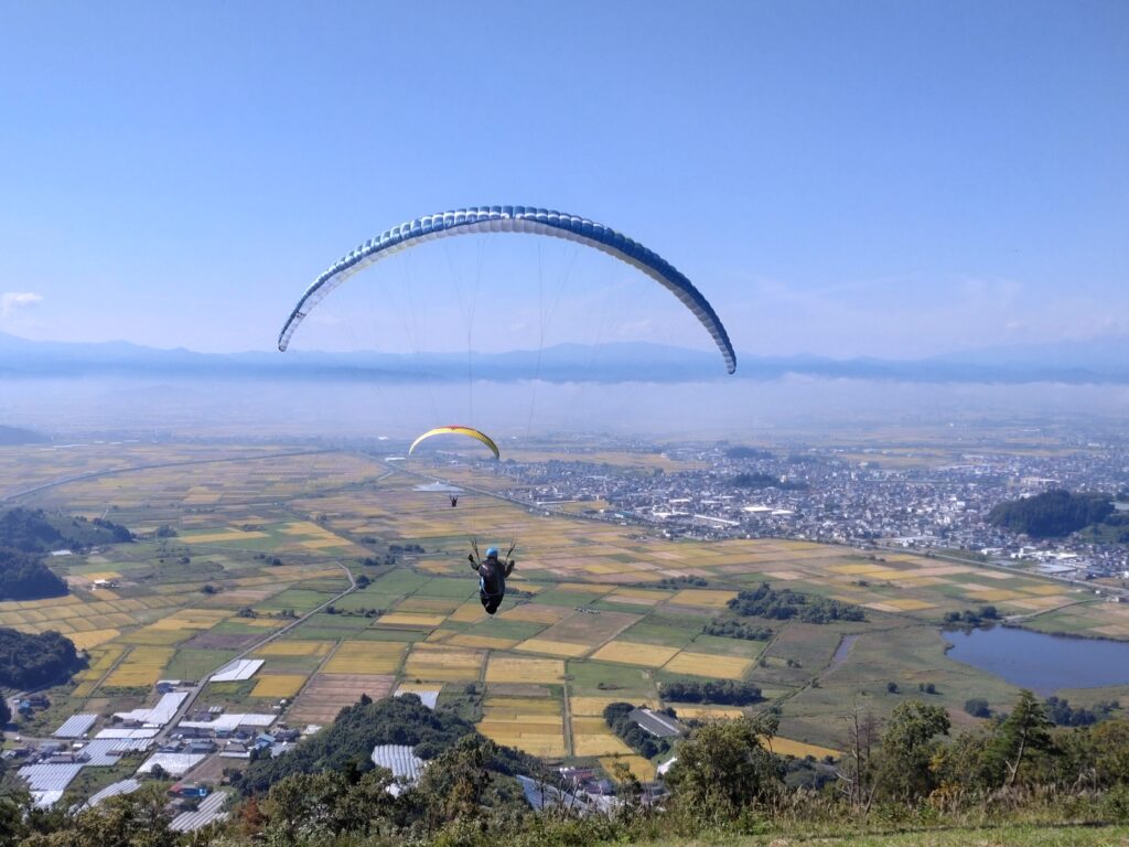 上空は秋晴れで盆地は雲海の朝を迎えました。移動性高気圧の中心は東に移り本流は東風ながらもエリアの中は静穏でテクニカル練習が進みました。夕方3時過ぎから東風が吹き込む前にタンデム講習も希望者全員フライト出来ました。B級パイロット課程の古関さんは6本高度処理練習OKです。