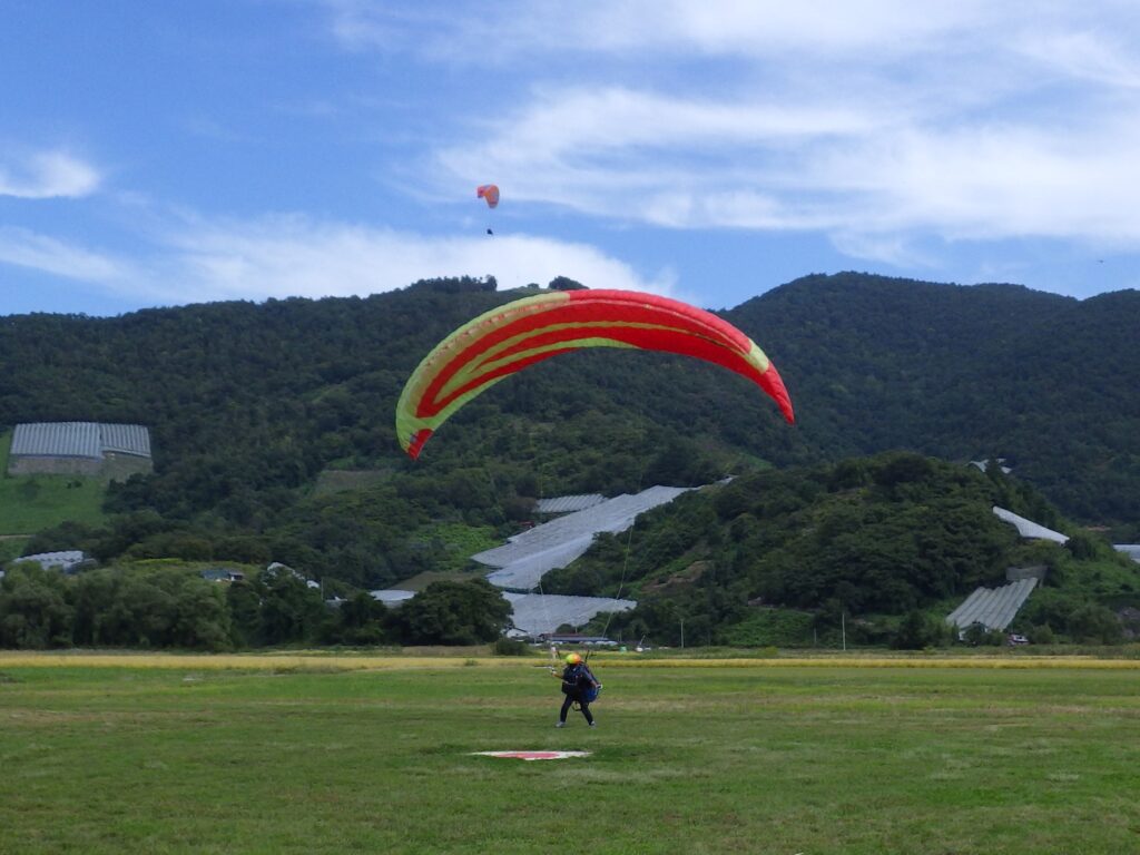 高気圧の圏内に入り青空ながら本流は北東風。朝霧を消すのに熱量が使われサーマルは弱く吹き降ろし風が支配的でした。それでも皆さん無風のタイミングを見計らって3本フライト。ほんの少しトップアウトも出来ました。
