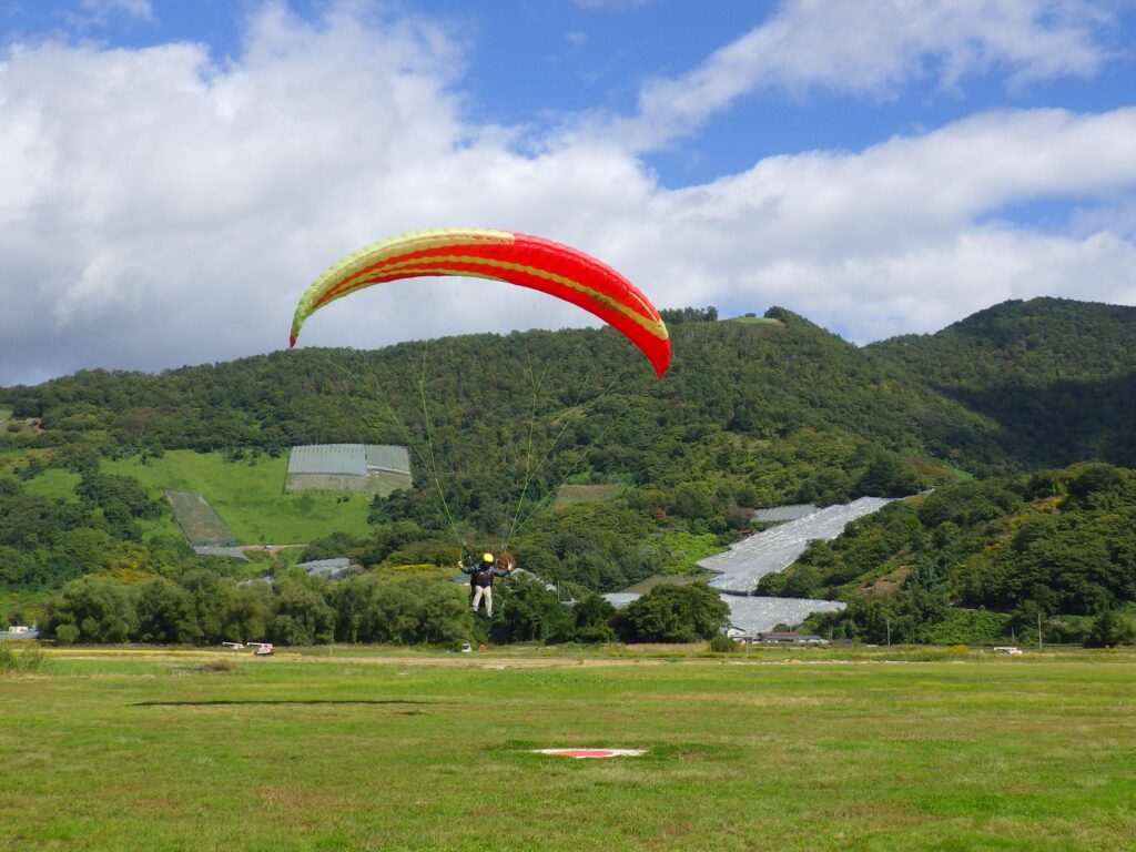 秋の移動性高気圧に覆われ青空とサーマルに恵まれました。朝から十分一山テイクオフにはサーマルが吹き上げソアリング開始。正午過ぎには雲底は海抜1,300mに達しパイロットの皆さんはそれぞれに秋のフライトを楽しんでいました。午後2時頃からはオーバーキャストになり本流の北風が支配的になってきたのでフライト終了。十分一山道路の草刈りなどのエリア整備に励みました。地元パイロットの皆さんありがとうございました。