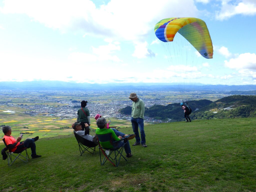 秋の移動性高気圧に覆われ爽やかな良いお天気に恵まれました。明日からのスカイフェスティバルの準備の為に集まってくれた地元パイロットの皆さんと登頂すると選手の皆さんは既にスタンバイ!夕方まで前日練習に励んでいました。楽しそうにソアリングを始める選手もいましたが、スタッフの皆さんは時折ジャッジの練習を織り交ぜながら大会準備は順調に進みました。