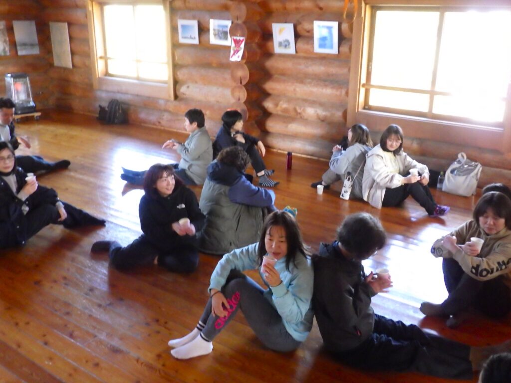 明け方まで降っていた雨の影響でヨガ教室は山頂ログハウスで開催。