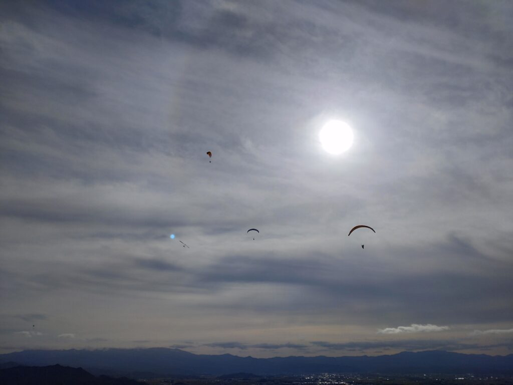 昨日からの冬型の気圧配置が緩み移動性高気圧に覆われてきました。朝の内は寒気の影響を感じさせるややゴツゴツした風でしたが、徐々にマイルドになり午後1時半頃には穏やかサーマルでソアリングが楽しめました。その後も穏やかなコンディションで日没までフライトが楽しめました。