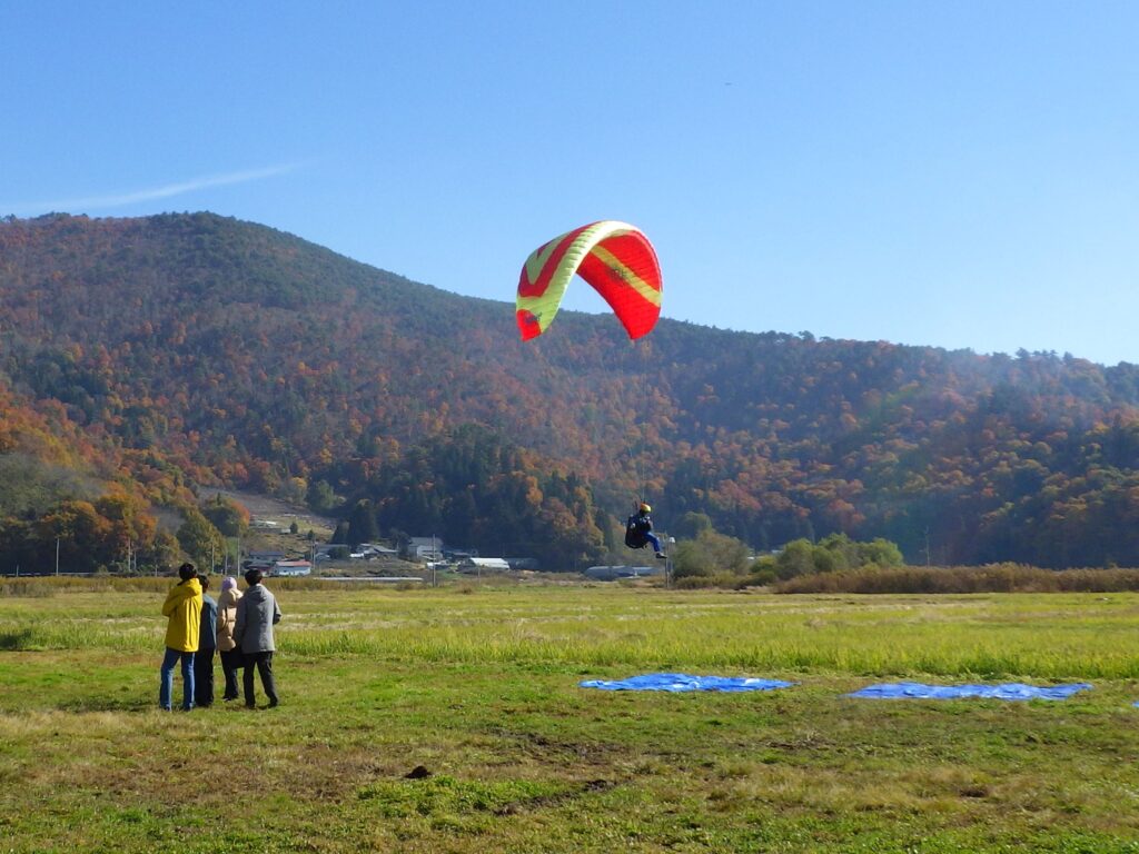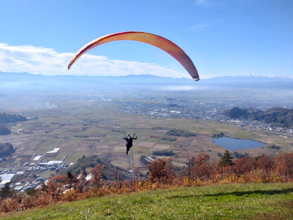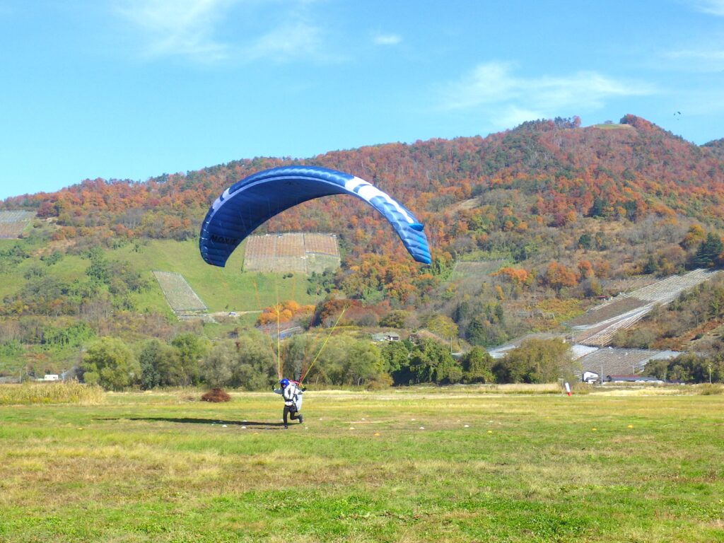 高気圧に覆われ、素晴らしい青空と穏やかなコンディションに恵まれました。朝から視界は良好!午後1時過ぎには弱いサーマルをうまく捕まえたパイロットの皆さんは海抜900mまで上昇してソアリングを楽しんでいました。新人戦にも好適なコンディションで全選手が合計4本フライト後には笑顔の表彰式となりました。選手・スタッフの皆さんお疲れ様でした。