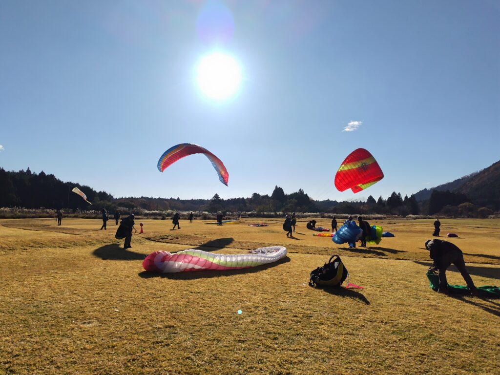 冬晴れした富士山に臨むスカイ朝霧テイクオフ。きっちり整備が行き届いています。
