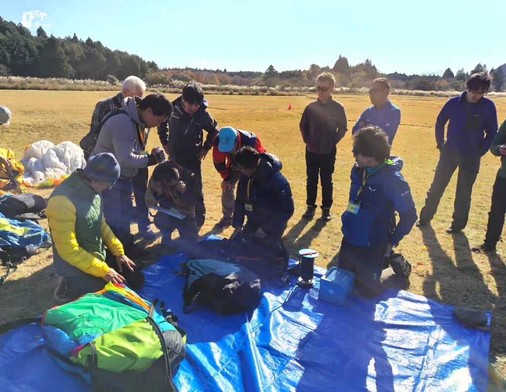前線通過後、西高東低の冬型の気圧配置が強まりました。雨と強風のクラブハウスでは学科講習が進みました。朝霧高原は冬晴れながらさすがに強風。JHF上級タンデム検定は朝凪でグラハンスラローム検定をした後は機材チェック。その後は検定課目や事故分析、保険などについての講習とディスカッションになりました。