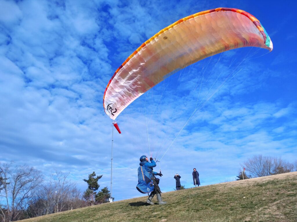 いい天気!飛べるだけ飛ぼう!西村さんスタート。