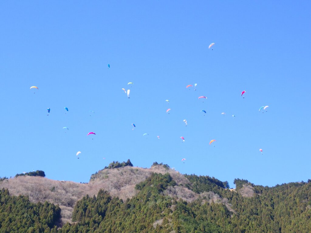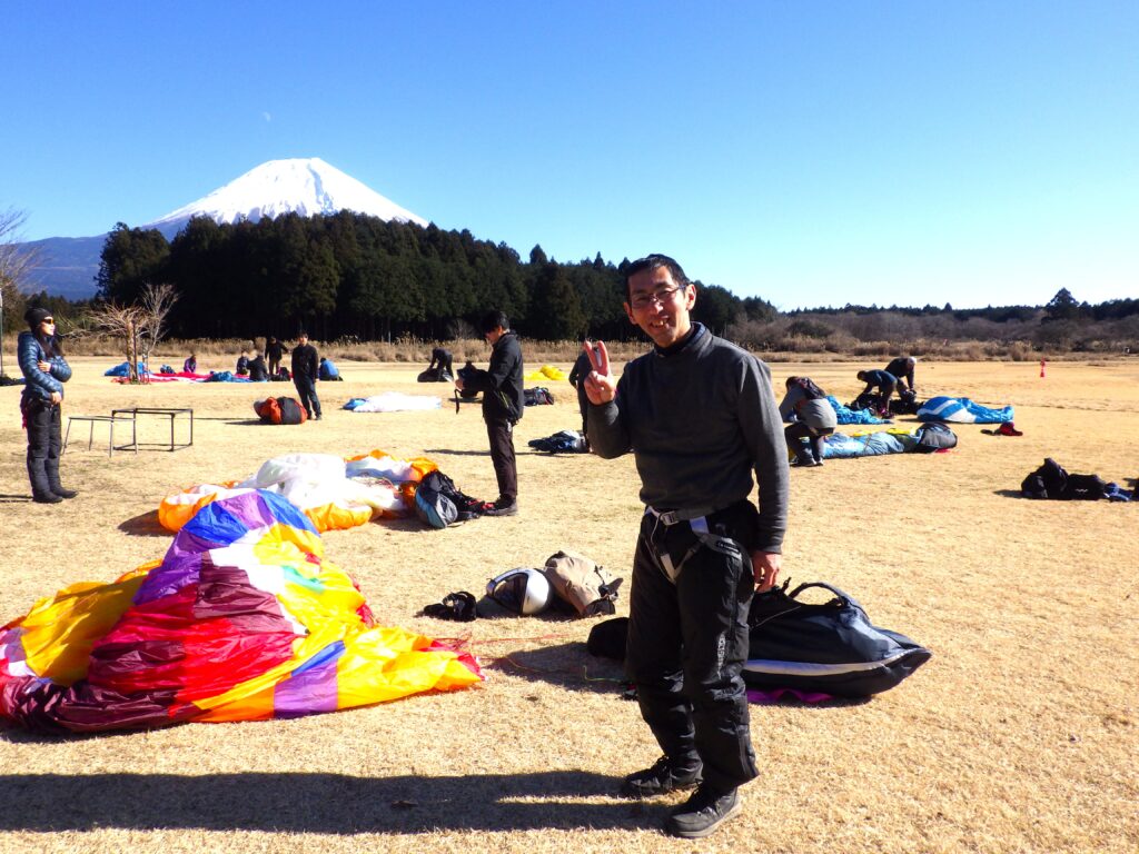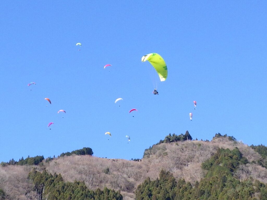 高気圧に覆われ広く良いお天気に恵まれました。十分一山道路は中途半端な雪で車も上がれず雪上バギーも出せずで登頂出来ませんでした。(すみません。)朝霧ツアー最終日は素晴らしい青空と穏やかなサーマルに恵まれ皆さん朝霧でのフライトを満喫していました。日中のサーマルトップは毛無山付近で海抜2,200mに達しました。古関さんは初サーマルソアリングで初トップアウトです。おめでとう。